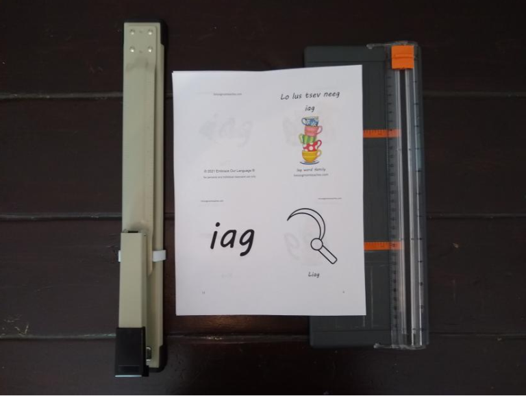 - Cut on the horizontal center of the full sheets of paper with a paper cutter.